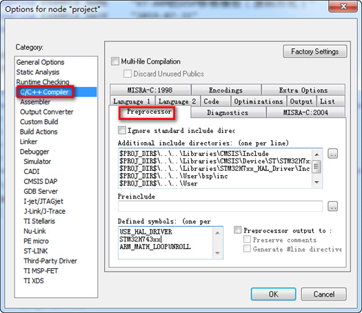 根据用户的使用要求,这几个预定义宏可以添加到IAR的预定义选项中: