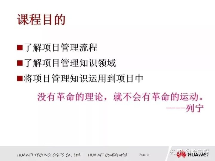 为达到上述目的,华为扎实开展项目管理文化建设。华为运用马斯洛模型,分析员工需求,引导员工从低层次物质需求转向高层次的文化需求,用制度牵引员工的行为,最终形成公司层面浓厚的项目管理文化氛围,促进公司项目管理的成功,从而保证公司的商业成功。