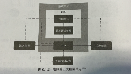 电脑主要由五大单元组成: 输入单元,输出单元,cpu内部的控制单元,算数逻辑单元与内存
