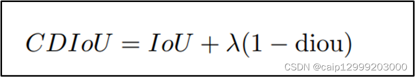 9.CDIoU Loss论文:https://arxiv.org/pdf/2103.11696.pdf 源码:CDIoU-CDIoUloss/loss.py at 5b911bc2cfe39c671a4e514d06ea73ad1f53292e · Alan-D-Chen/CDIoU-CDIoUloss (github.com) Control Distance IoU Loss是由同济大学学者提出的,文章的主要贡献是在几乎不增强计算量的前提下有效提升了边界框回归的精准度。目前检测领域主要两大问题:(1)SOTA算法虽然有效但计算成本高(2)边界框回归损失函数设计不够合理。 文章首先提出了一种对于Region Propasl(RP)和Ground Truth(GT)之间的新评估方式,即CDIoU。可以发现,它虽然没有直接中心点距离和长宽比,但最终的计算结果是有反应出RP和GT的差异。计算公式如下: 对比以往直接计算中心点距离或是形状相似性的损失函数,CDIoU能更合理地评估RP和GT的差异并且有效地降低计算成本。然后,根据上述的公式,CDIoU Loss可以定义为: 通过观察这个公式,可以直观地感受到,在权重迭代过程中,模型不断地将RP的四个顶点拉向GT的四个顶点,直到它们重叠为止,如下图所示: |