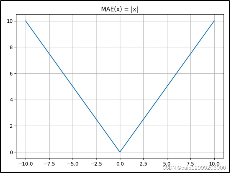 平均绝对误差(MAE)是另一种常用的回归损失函数,它是目标值与预测值之差绝对值和的均值,表示了预测值的平均误差幅度,而不需要考虑误差的方向(注:平均偏差误差MBE则是考虑的方向的误差,是残差的和),范围是0到∞。 (1)图像: (2)性能: