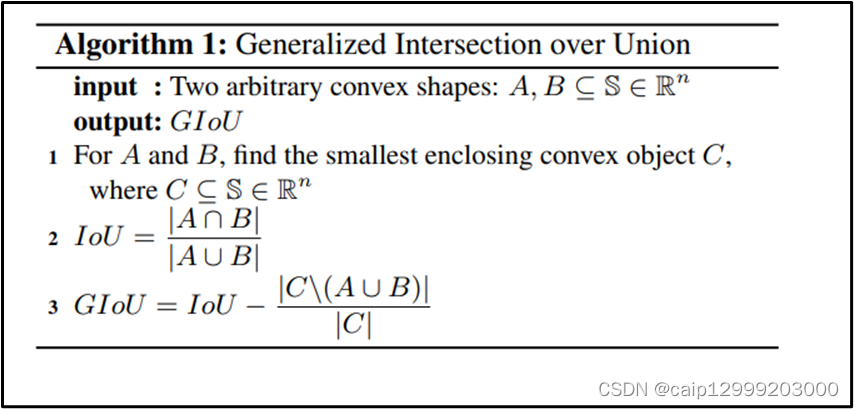 5.GIoU Loss 即泛化的IoU损失(考虑重叠面积)论文:https://arxiv.org/pdf/1902.09630.pdf
