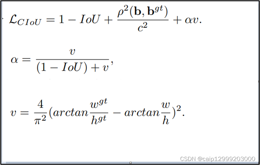 7.CIoU Loss 即完整IoU损失(考虑重叠面积,中心点距离,宽高比)