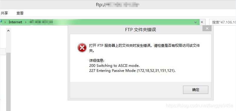 2、使用windows本地文件夹访问时,提示FTP文件夹错误,227 Entering Passive Mode..