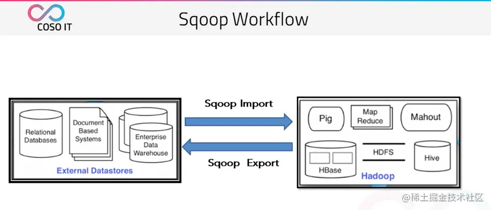 同时也可以将 hadoop 生态集群中的数据导回到传统的关系型数据库 | 文件型数据库 | 企业数据仓库中。