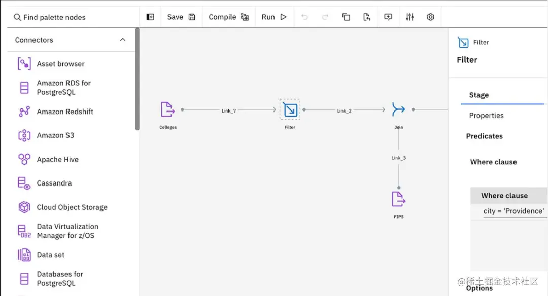 - 数据质量:Datastage 有配套用的 ProfileStage 和 QualityStage 保证数据质量。