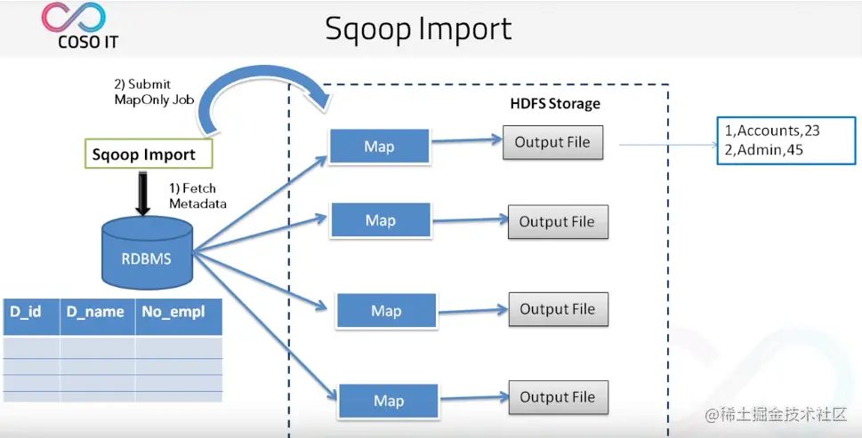 - 首先 Sqoop 去 rdbms 抽取元数据。