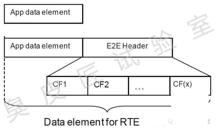 Step1: 发送端通过增加控制字段拓展数据结构,控制字段一般包含:checksum、counter等,扩展处的字段由RTE进行发送,如下图所示: