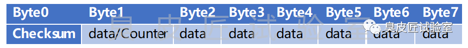 例如,Autosar E2E profile 1 规定采用CRC-8-SAE J1850 ,对应多项式为0x1D (x8 + x4 + x3 + x2 + 1),通常情况下报文数据场中Byte0 用于存放报文CheckSum 数据,byte 1~byte7 存放报文其它数据,报文数据场存放数据下图所示。
