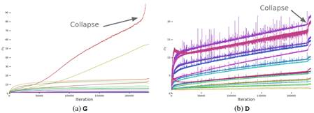 但事实上我们不需要对此感到意外,因为这符合 D 的角色:不断提炼训练数据并为 G 提供有用的学习信号。因此针对第二个问题我们不需要做过多的调整,因为D过拟合对模型稳定性影响不大,我们只需要保证G能接受到正确的学习信号即可。