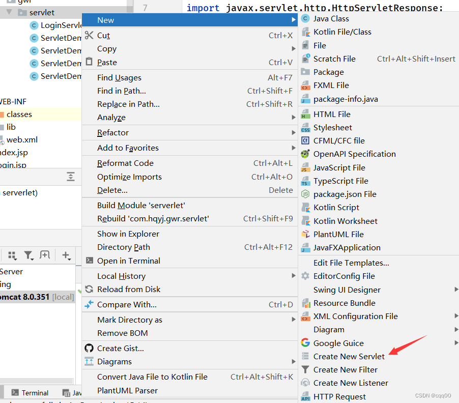 创建LoginServlet,获取浏览器的登录请求,自行判断是否登录成功,如果成功,跳转/success.jsp,如果失败,跳转会login.jsp