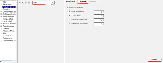 3、工况设置,包括定义分析类型及结果输出,操作如下: