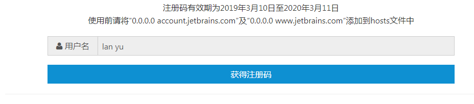 保存完毕之后,回到IntelliJ IDEA 注册码的网页,点击中间的获得注册码,然后复制弹出的注册码。