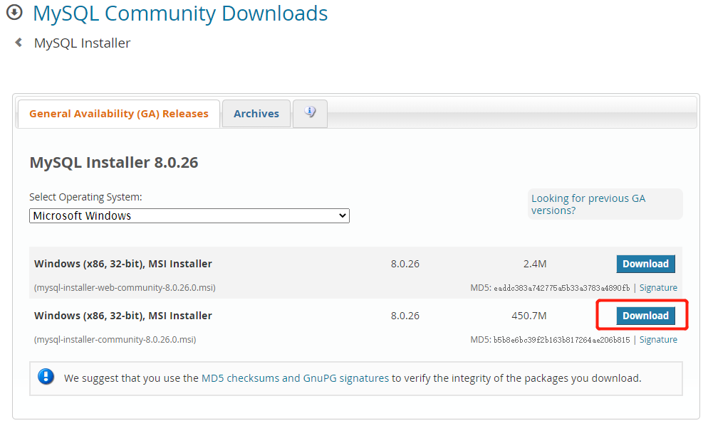 MySQL下载地址:MySQL :: Download MySQL Community Server