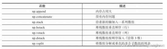 - 对于append和concatenate,待合并的数组必须有相同的行数或列数