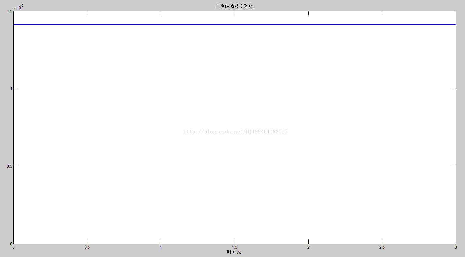 plot(t(1:Signal_Len),w_out(1),'r',t(1:Signal_Len),w_out(2),'b');