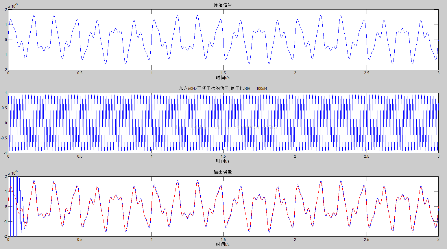 string = ['加入50Hz工频干扰的信号,信干比SIR = ',num2str(SIR),'dB'];