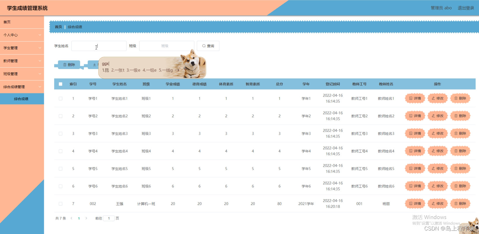 本课题要求实现一套学生成绩管理系统,系统主要包括管理员模块、学生模块和教师等功能模块。