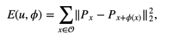 其中φ是在Ω像素之间的对应关系映射,必须满足X + φ(X)∈ d〜对于所有X ∈Ω。这种成本函数是非凸的,我们使用的启发式方法,以尽量减少或者它ü和φ。