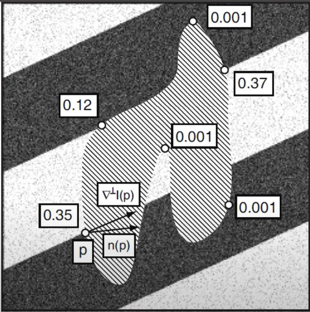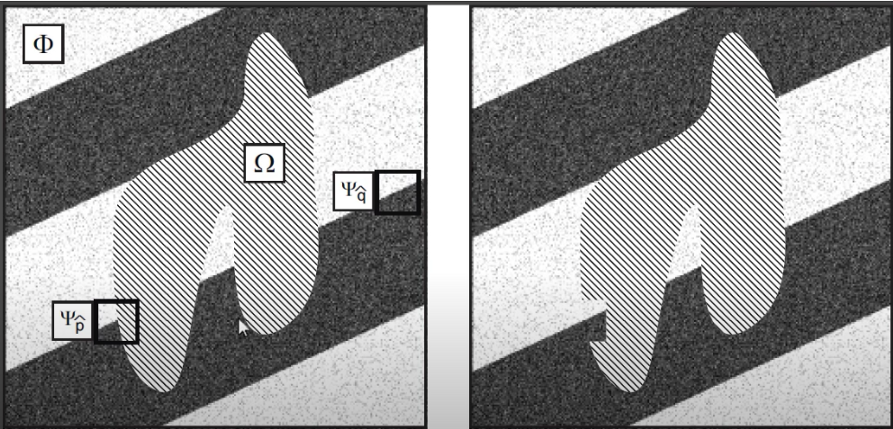 [2]生成从孔的边界到内部的图像。在每次迭代中,他们计算边缘δΩ上每个像素p的优先级P(p),然后选择优先级最高的像素作为p_m。