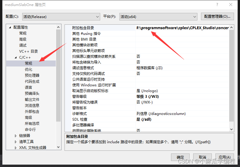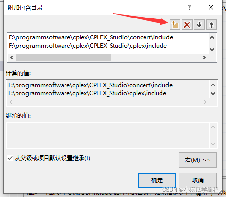 以上三个就是要附加进去的目录,均在cplex的安装目录之下,红色部分大概都是一样的,部分与版本和电脑有一定的不同,但都差不多。