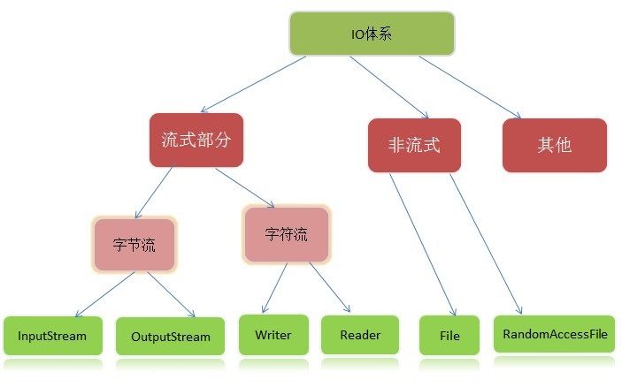 文件的存储介质有很多,比如光盘,硬盘,U盘,外置硬盘等等。由于IO类在设计之初,已经实现了从数据源变为流对象这个过程,所以存储介质对于程序员来说就相当于一个黑盒,不用管了,也不用自己实现,我们只需要关注如下图的I/O操作体系:
