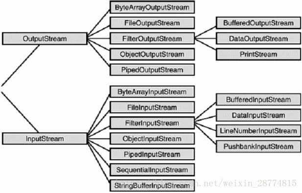 I/O操作主要指的是使用java进行输入,输出操作。Java所有的I/O机制都是基于数据流进行输入输出,这些数据流标识了字符或者字节的流动序列。Java.io是面向数据流的输入输出的主要软件包。此外java也对块传输提供支持,在核心库Java.nio 中采用的便是块IO. 流IO的好处是简单易用,缺点是效率比较低。块IO的效率很高,但是编程上稍微复杂。Java.io 包中包含了流式I/O所需要的所有类。其中有四个基类:inputStream, outPutStream, Reader, Writer。Java的IO模型设计的特别优秀,他使用了Decoretor模式,按功能划分为 Stream, 可以动态装配这些Stream,以便于获得我们所需要的功能,例如,我们需要一个具有缓冲的文件输入流,则应当使用FileInputStream 和 BufferedInputStream的组合来进行。