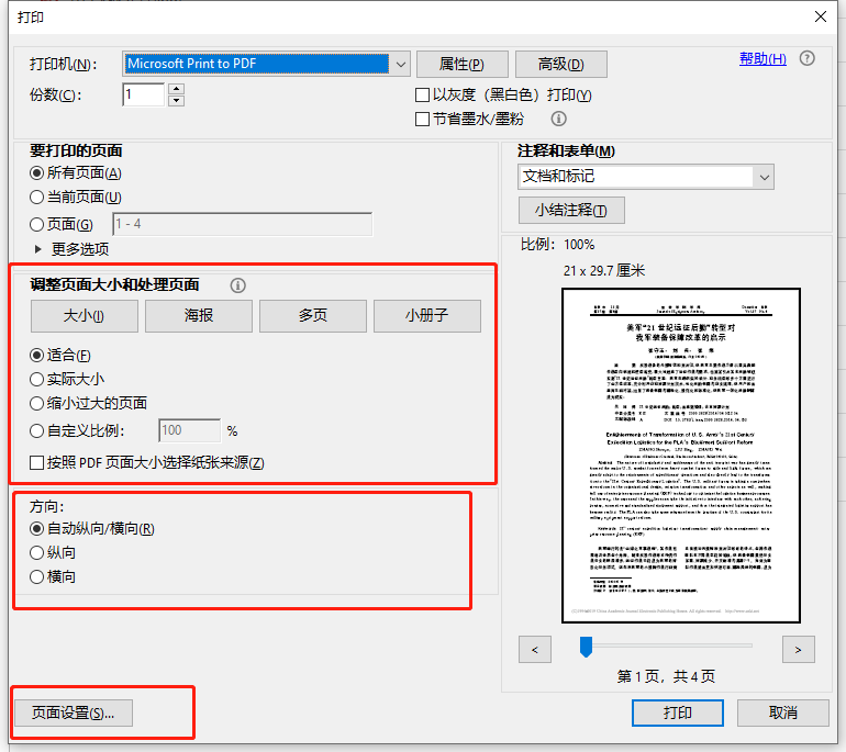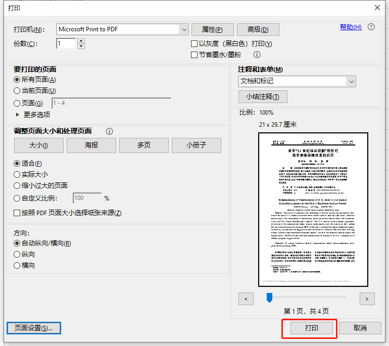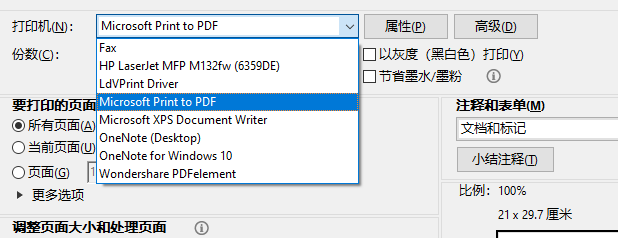 第三步:选择Adobe 的虚拟打印机 Microsoft Print to PDF,