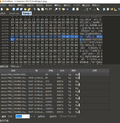 依旧打开zip,照旧010打开,搜索文本没有什么发现,将图片继续拖,搜索文本,得到flag