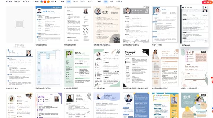 在线编辑网站,里面有超多简历模板,风格种类多,还可以直接在线编辑,文案都给你直接写好了。很多都能免费下载,只有小部分需要会员。