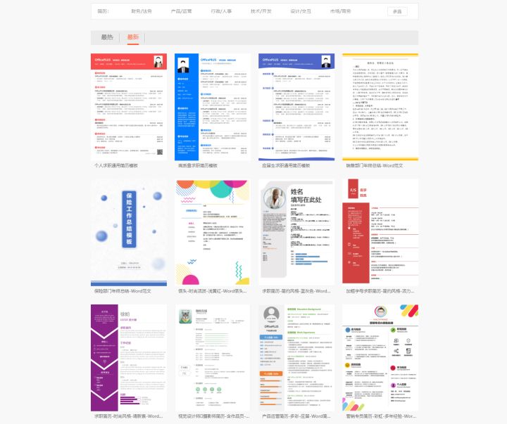 这个是office官方旗下网站,有分PPT、word、excel三个板块,简历模板在word板块里面,每个简历模板都有职业分类,找起来特别方便。风格整体偏商务,全部都能免费下载。
