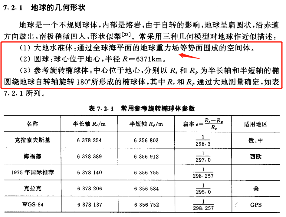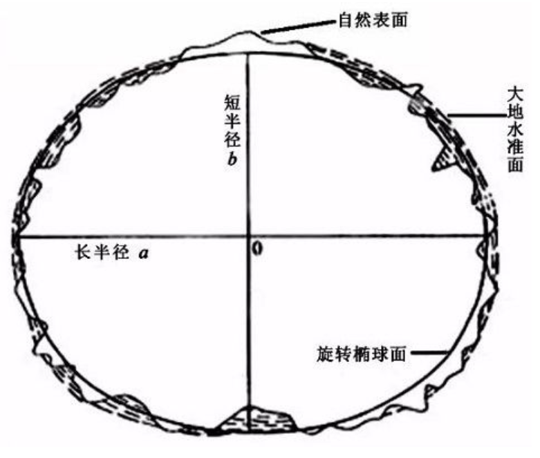 鉴于地球重力表面的不规则,不能用作确定空间坐标的表面,因此,使用了一种更接近于大地水准面模型的几何学形状——椭球体!(简单将,就是绕椭圆短半轴旋转而成的三维形体)