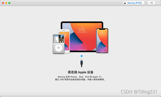下图是iMazing的初始界面,提示我们连接Apple设备。