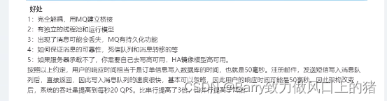 业务原因,分布式架构,把系统进行拆分,做了某几个模块,它们之间要互相沟通协同,公司采用消息队列,所以用了rabbitmq,我感觉他是一个异步多线程机制,让网站系统性能提升,异步处理数据能力高效稳健。