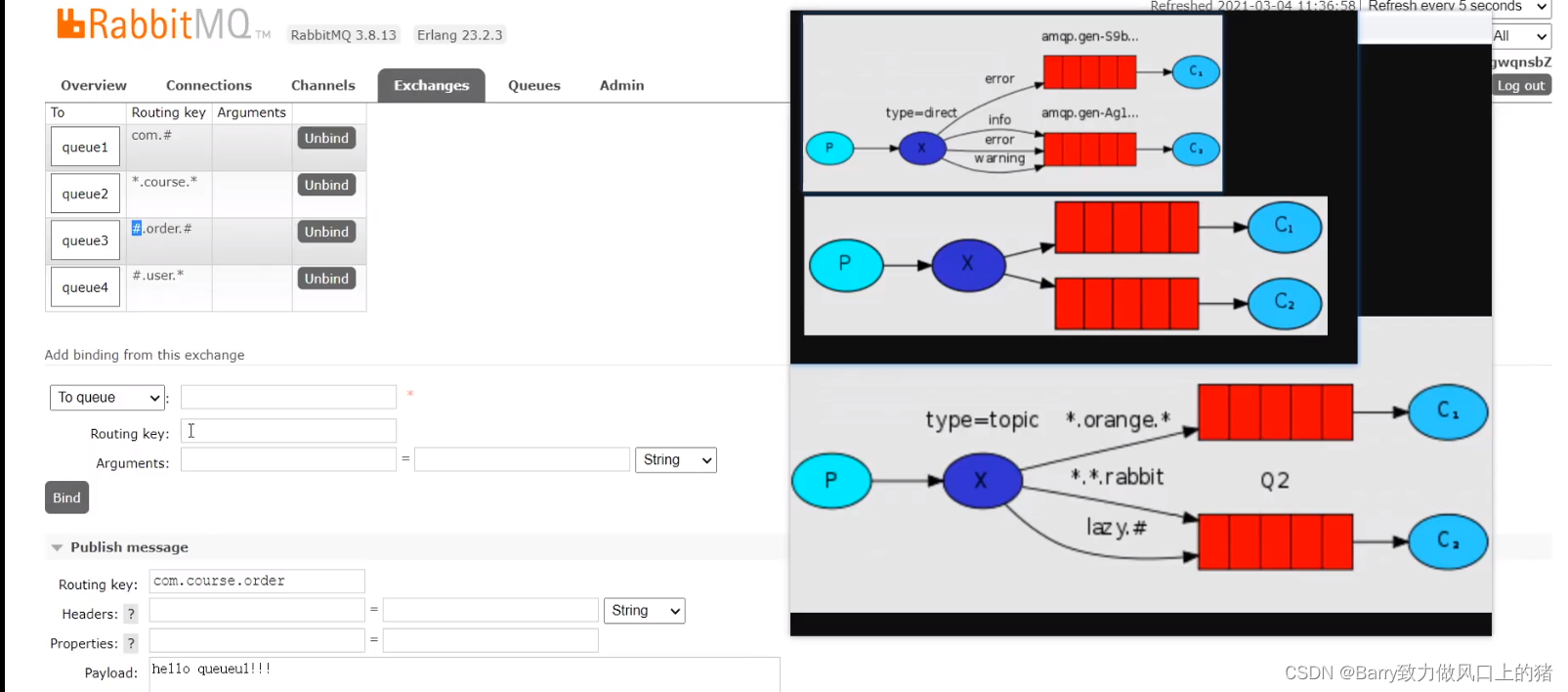 比如 设置路由key为com.*,只有队列路由key为 com.xx是匹配的;