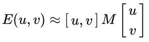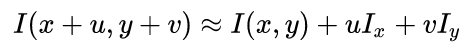 其中窗口函数(权重矩阵)可以是平坦的,也可以是高斯的,是一个二维的滤波器。对于一个角点来说, E(u,v)会非常大。因此,我们可以最大化上面这个函数来得到图像中的角点。用上面的函数计算会非常慢。因此,我们使用泰勒展开式(只有一阶)来得到这个公式的近似形式。