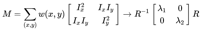 矩阵M又称为Harris矩阵。w(x,y)的宽度决定了在像素x 周围的感兴趣区域。