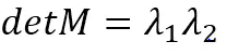 其中k为经验常数,一般取k=0.04~0.06。为了去除加权常数κ,我们通常使用商数detM/(traceM)2作为指示器。所以,上图可以转化为: