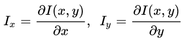 其中Ix和Iy是I的偏微分,在图像中就是在x和y方向的梯度图(可以通过cv2.Sobel()来得到):