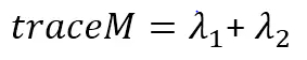 得到E(u,v)的最终形式,我们的目的是要找到会引起较大的灰度值变化的那些窗口。灰度值变化的大小则取决于矩阵M,那么如何找到这些窗口,我们可以使用矩阵的特征值来实现。