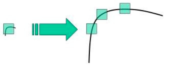 Harris 检测器具有旋转不变性,但不具有尺度不变性,也就是说尺度变化可能会导致角点变为边缘,如下图所示: