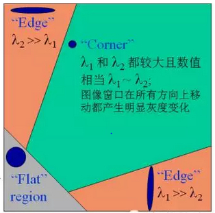 通过M的两个特征值λ1和λ2的大小对图像点进行分类: