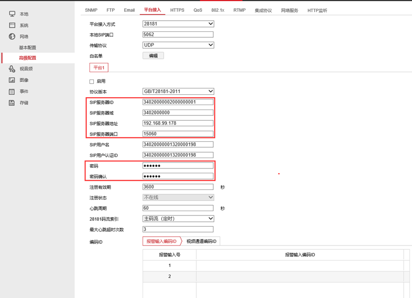 2)摄像头可以直联到电脑,访问摄像头的IP,输入用户名和密码,在【高级配置】中【平台接入】进行配置;