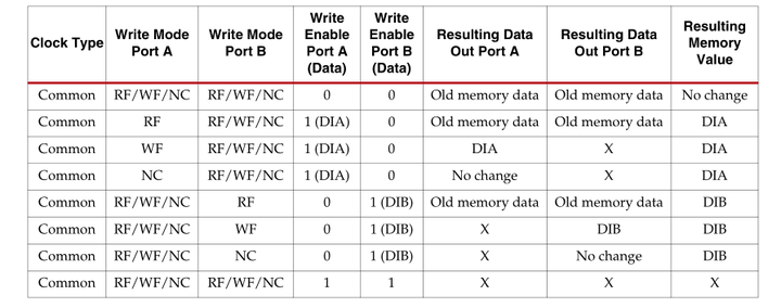 BRAM的一些概念,如单口(Single Port ,简称SP),简单双端口(SDP,Simple Dual Port),真双端口(TDP,True Dual Port)其实和DRAM差不多这里我就不多加累述。有需要的同学可以回到下面的连接去看。
