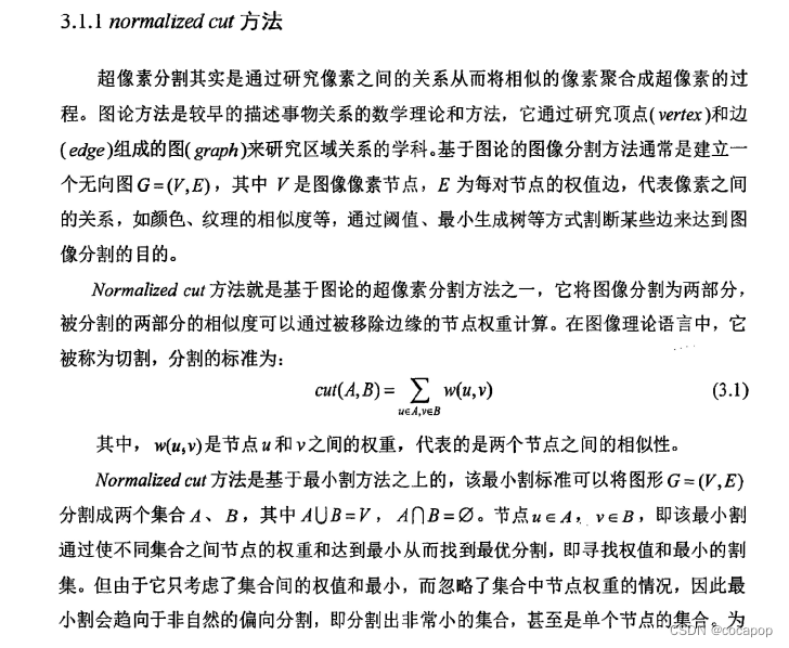 - Ncut方法——利用轮廓特征和纹理特征来全局最小化代价函数 [可控制数量且形状规整紧凑,但图边界效果不好,计算量大,处理大图片时速度很慢] //不用