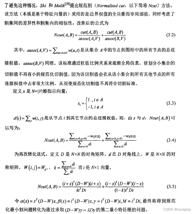 该方法可以得到较为规则的最小割且其全局特性使该方法对于噪声也有一定的鲁棒性,但是该方法对边缘的吸附性不是很强,割集之间有相互渗透的情况,更重要的是,该方法的求解复杂度较大,为O(n的三次方)。虽然之后该作者又提出了一种近似求解方法将复杂度降为了O(n的0.5次方),但计算效率仍然不高,尤其是大尺寸图像所需的计算时间更长。