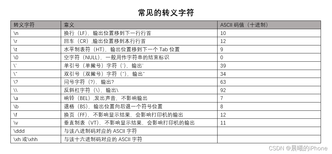 c语言中还有一种特殊形式的字符常量,这就是一反斜杠'\'开头,后面跟一个或几个字符,它们便没有原来的意义了而是具有特殊意义,故也称为“转义字符”。
