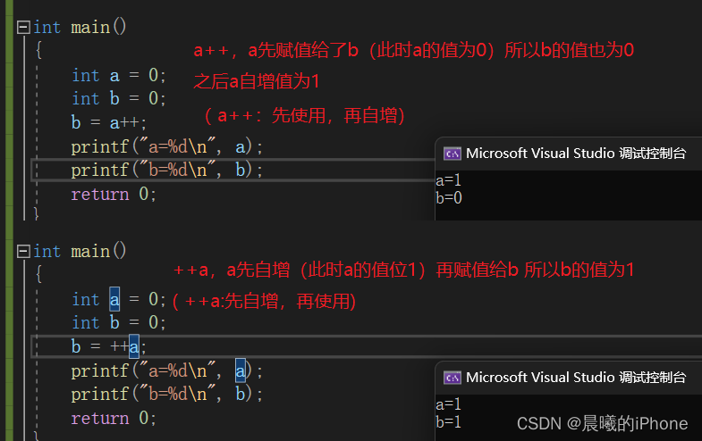 注:a++与++a的区别是:前者是先使用,再自增,后者是先自增,再使用。例如: