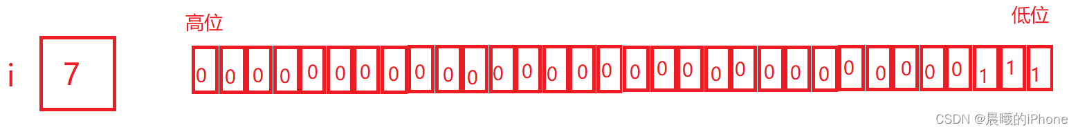 十进制7的二进制形式为111,但在内存中却占4个字节