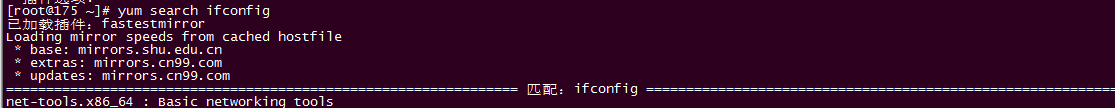 通过yum search 这个命令我们发现ifconfig这个命令是在net-tools.x86_64这个包里,接下来只要安装这个包就行了
